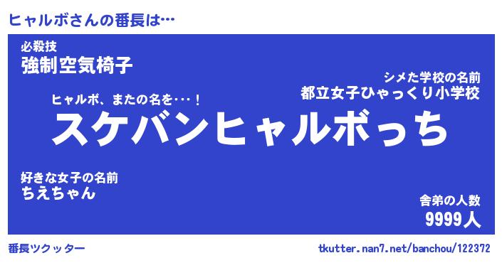 | 意味不明あだ名 | 『ペロリンヒャルボ』『永久保存ヒャルボ』 |