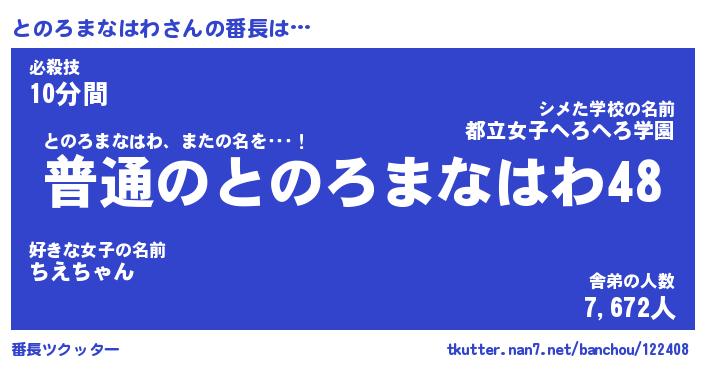 | 2回繰り返すあだ名 | 『とのとの』『ととのの』『ぬれぬれ』 |