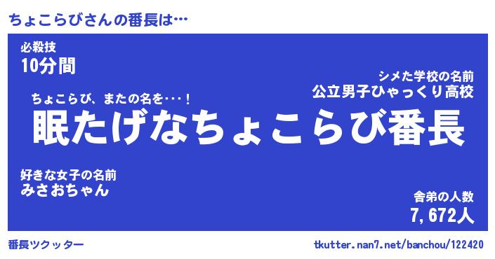 | 伝説のあだ名 | 『封印されしスナイパーちょこらび』 |