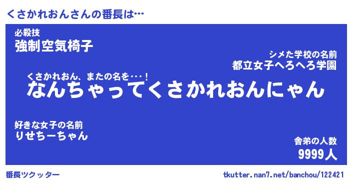 | 男性向けラノベタイトル風あだ名 | 『くさかれおんの憂鬱』 |