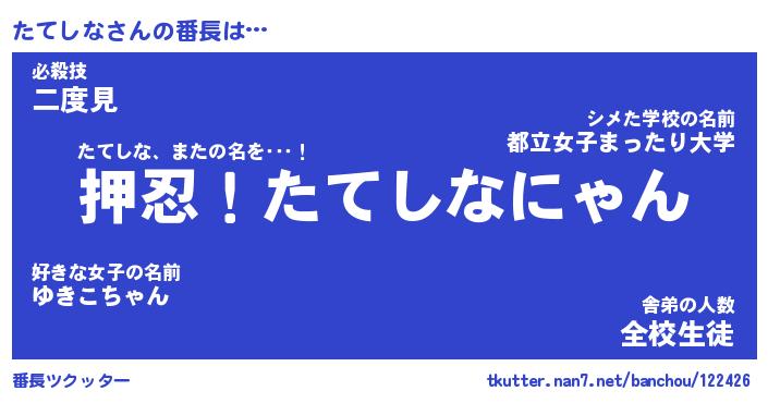 | ヒーロー風カッコイイあだ名 | 『スーパータテシナ』『暗黒騎士タテ』 |
