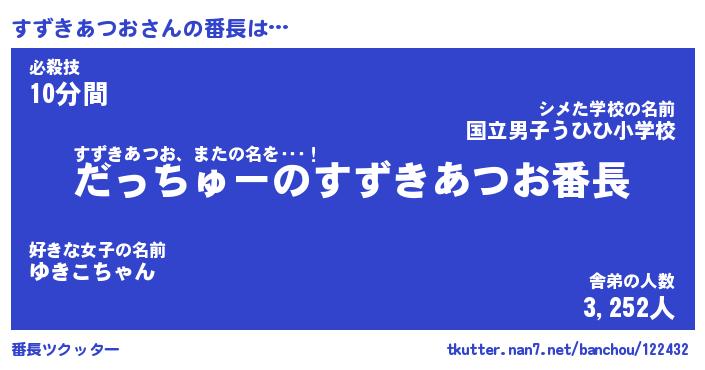 | ヒーロー風カッコイイあだ名 | 『スーパースズキアツオ』『黄金騎士スズ』 |