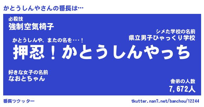 | ヒーロー風カッコイイあだ名 | 『スーパーカトウシンヤ』『魔戒騎士カト』 |