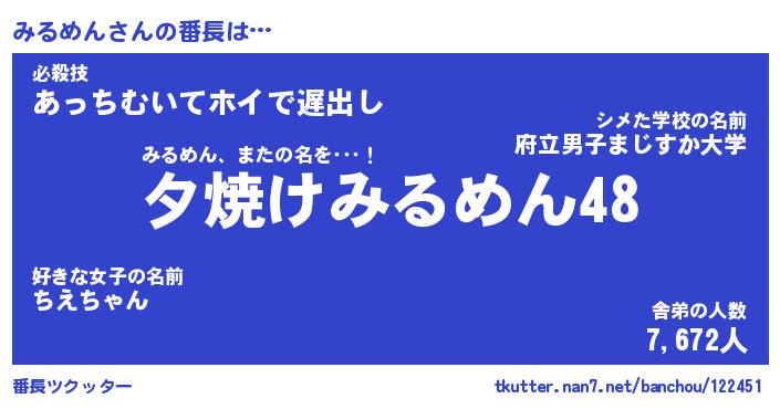 | 肩書あだ名 | 『みるめん店長』『みるめん国家主席』 |