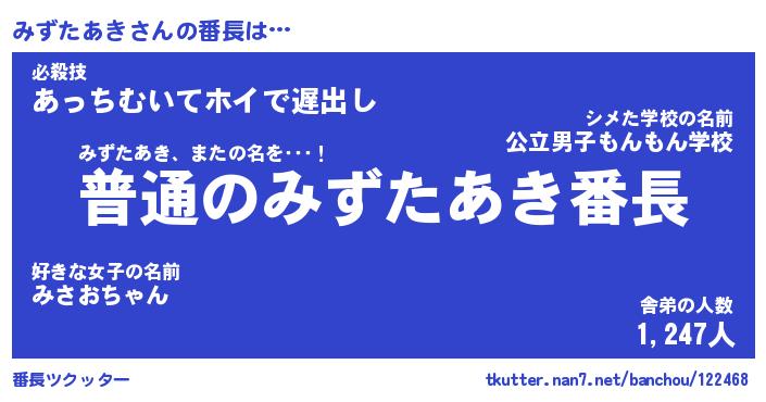| 肩書あだ名 | 『みずたあき社長』『みずたあき国家主席』 |