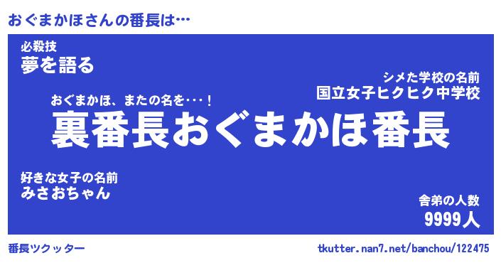 | ヒーロー風カッコイイあだ名 | 『スーパーオグマカホ』『天弓騎士オグ』 |