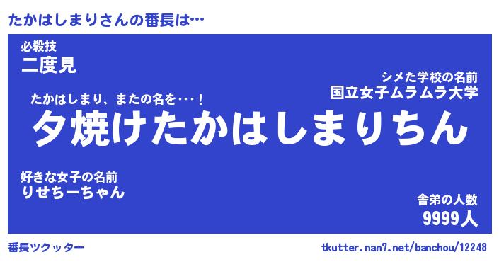 | 伝説のあだ名 | 『封印されしスナイパーたかはしまり』 |