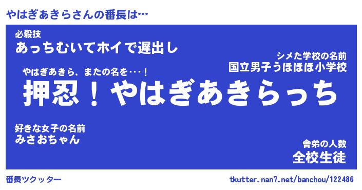 | 伝説のあだ名 | 『封印されし傭兵やはぎあきら』 |