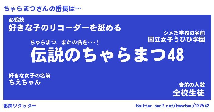 | ヒーロー風カッコイイあだ名 | 『スーパーチャラマツ』『幻影騎士チャ』 |