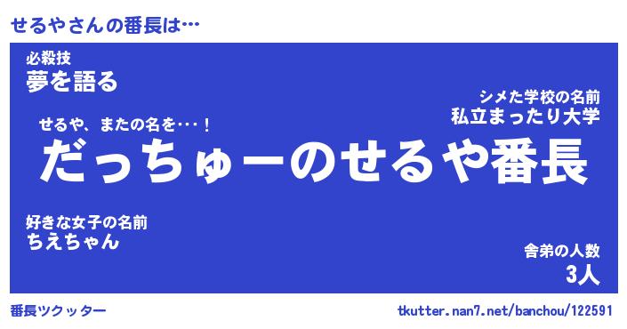 | 意味不明あだ名 | 『ペロリンせるや』『せるやフォーエバー』 |
