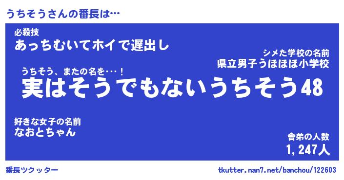 | 意味不明あだ名 | 『ペロリンうちそう』『永久保存うちそう』 |