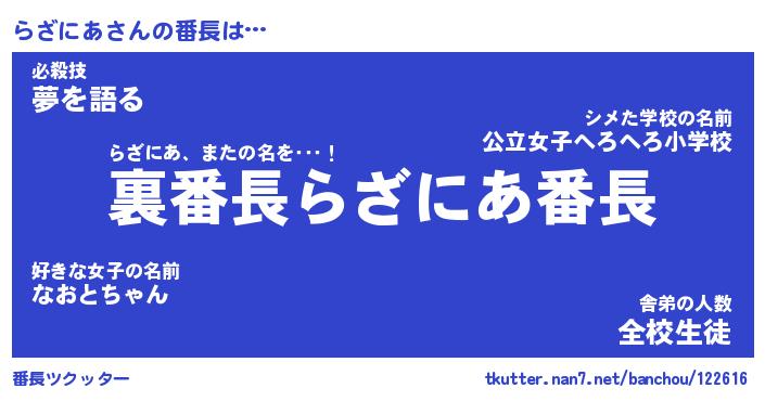 | 意味不明あだ名 | 『ペロリンらざにあ』『永久保存らざにあ』 |