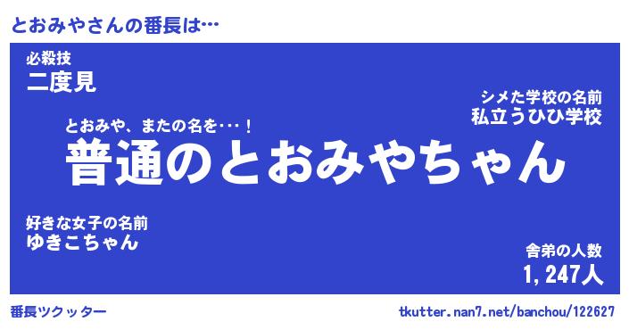 | 肩書あだ名 | 『とおみやCEO』『とおみや国家主席』 |