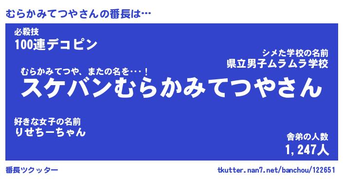 | ヒーロー風カッコイイあだ名 | 『スーパームラカミテツヤ』 |