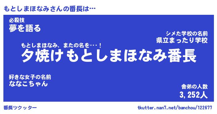 | 肩書あだ名 | 『もとしまほなみ御曹司』 |
