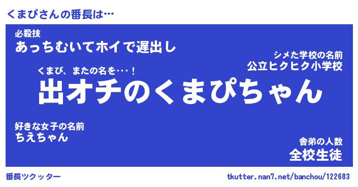 | 伝説のあだ名 | 『伝説のスナイパーくまぴ』 |