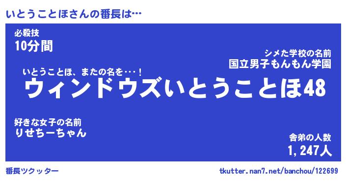| 恥ずかしいあだ名 | 『プリティーいとうことほ』『いとっちょ』 |