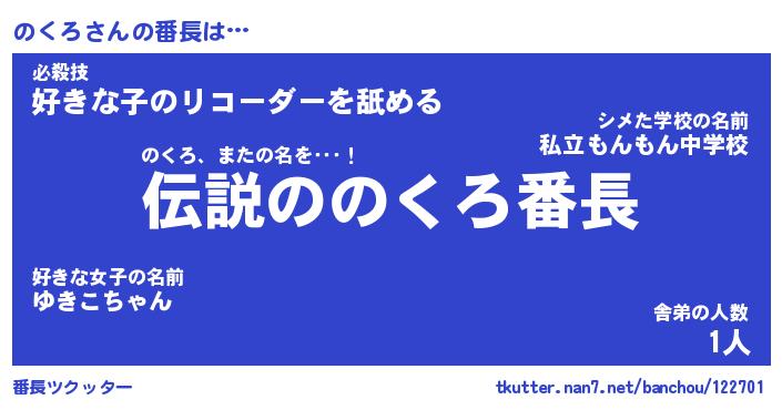 | ヒーロー風カッコイイあだ名 | 『スーパーノクロ』『ウルトラのくろマン』 |