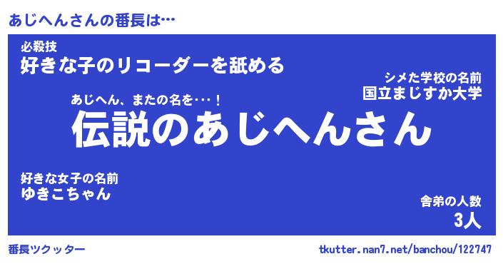| 伝説のあだ名 | 『伝説のスナイパーあじへん』 |