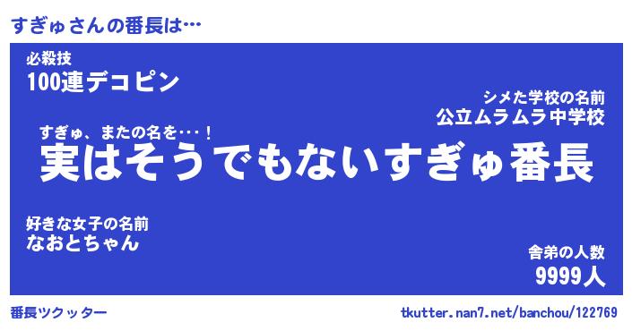 | 伝説のあだ名 | 『封印されしスナイパーすぎゅ』 |