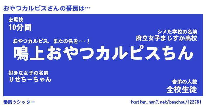 | 伝説のあだ名 | 『封印されし竜騎士おやつカルピス』 |