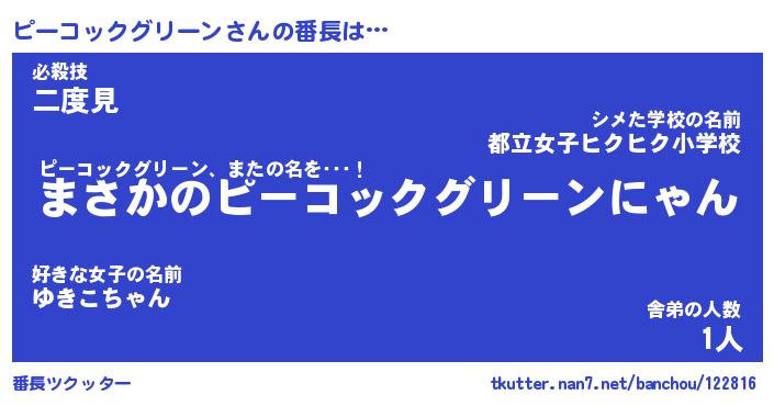 | ヒーロー風カッコイイあだ名 | 『スーパーピーコックグリーン』 |