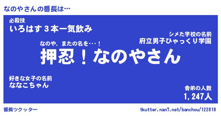| 意味不明あだ名 | 『ペロリンなのや』『なのやフォーエバー』 |