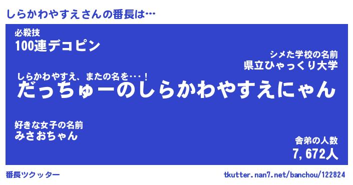 | ヘコむあだ名 | 『しらにゅー』『つくし』『しらっ子』 |