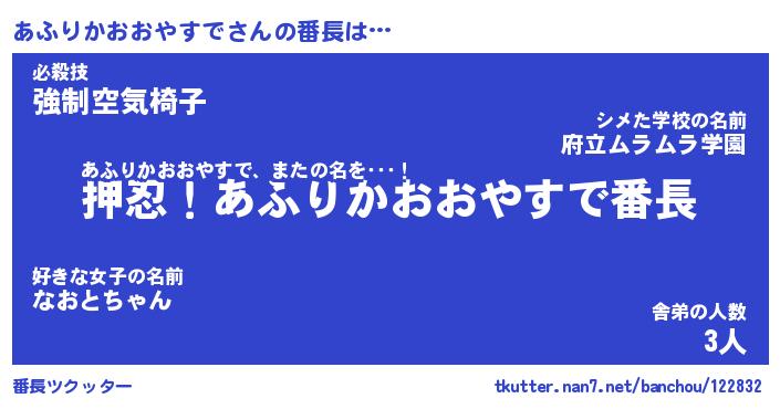 | 肩書あだ名 | 『あふりかおおやすでCEO』 |