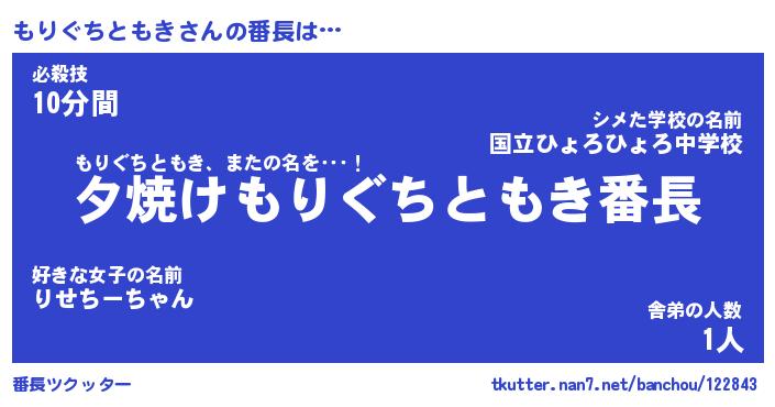 | ヒーロー風カッコイイあだ名 | 『スーパーモリグチトモキ』 |