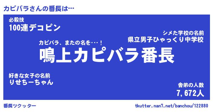 | ヒーロー風カッコイイあだ名 | 『スーパーカピバラ』『暗黒騎士カピ』 |