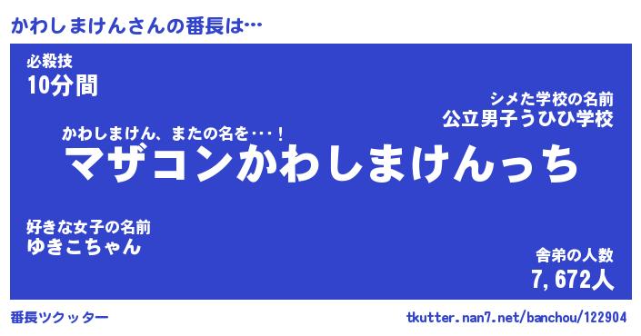 | ヒーロー風カッコイイあだ名 | 『スーパーカワシマケン』『炎刃騎士カワ』 |