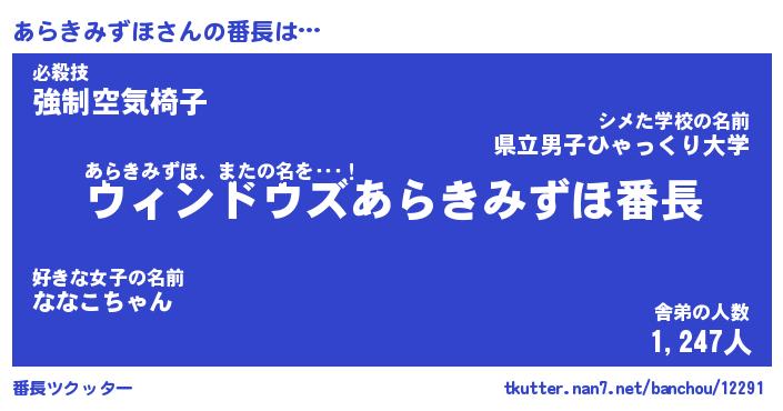| ヒーロー風カッコイイあだ名 | 『スーパーアラキミズホ』『黄金騎士アラ』 |