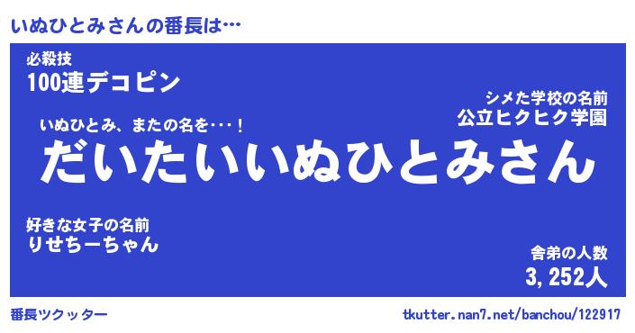 | ポケモン風あだ名 | 『イヌチュウ』『イヌヒダネ』 |