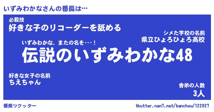 | ヘコむあだ名 | 『いずにー』『レバニラ』『いずっ子』 |