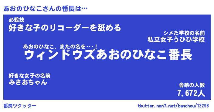 | 伝説のあだ名 | 『伝説のスナイパーあおのひなこ』 |