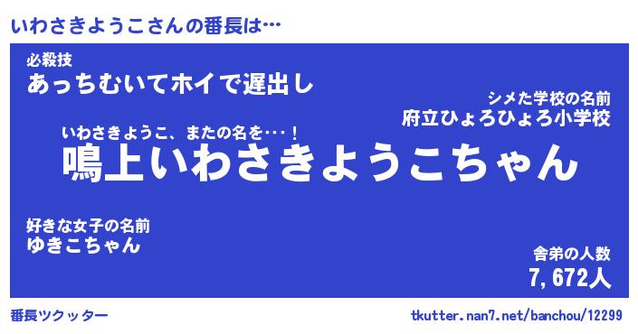 | ピコ太郎風あだ名 | 『イコ二郎』『ピイ次郎』『イワ六郎』 |