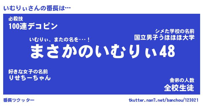 | ヘコむあだ名 | 『いむにゅー』『豆乳』『いむを』 |