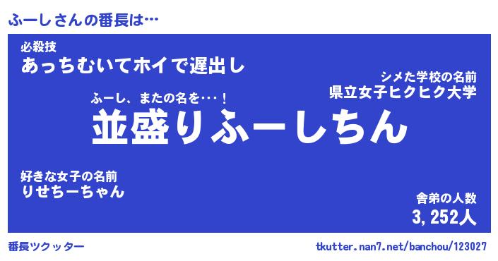 | ヒーロー風カッコイイあだ名 | 『スーパーフーシ』『ウルトラふーしマン』 |