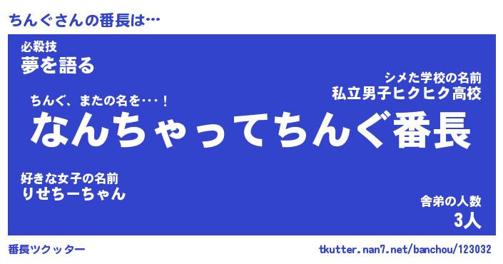 | ファンタジー風あだ名 | 『チンフェル』『エターナルチングー』 |