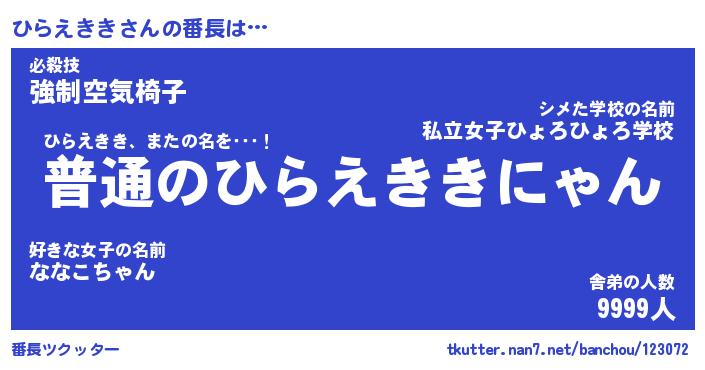 | ヒーロー風カッコイイあだ名 | 『スーパーヒラエキキ』『暗黒騎士ヒラ』 |