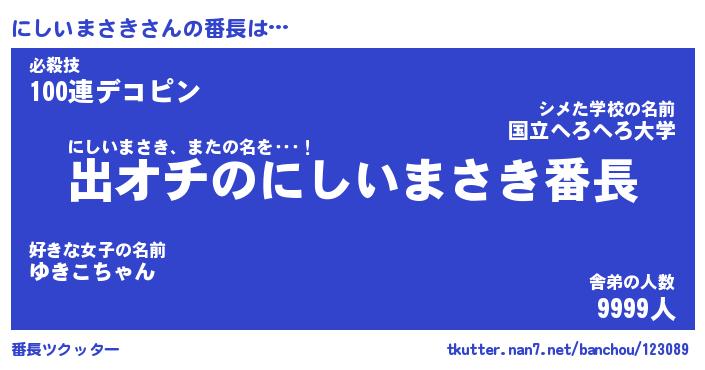 | ファンタジー風あだ名 | 『ニシフェル』『ファントムニシス』 |