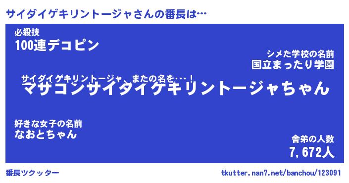 | 欧米人風あだ名 | 『マイケルサイダイゲキリントージャ』 |