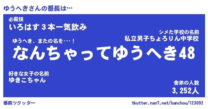 | ポケモン風あだ名 | 『ユウチュウ』『ユウヘダネ』 |
