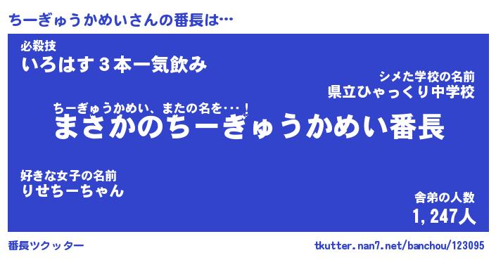 | 肩書あだ名 | 『ちーぎゅうかめい店長』 |