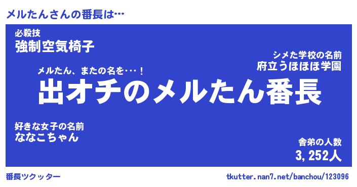 | 意味不明あだ名 | 『ペロリンメルたん』『永久保存メルたん』 |