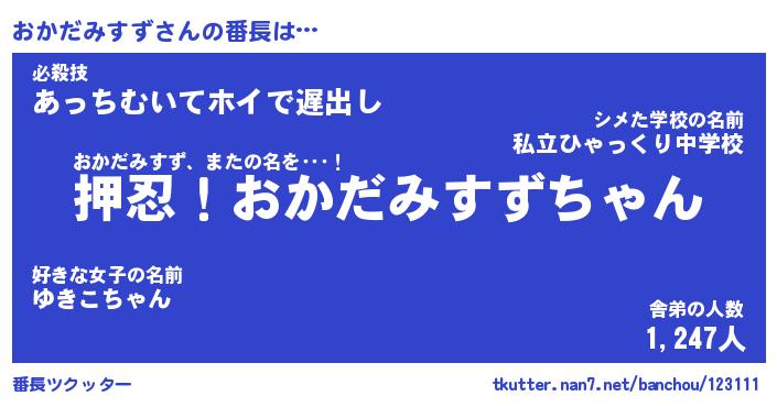 | 2回繰り返すあだ名 | 『おかおか』『おおかか』『にたにた』 |