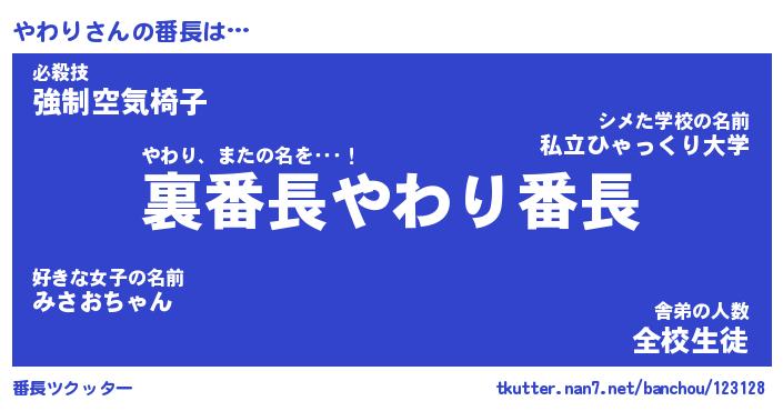 | ヒーロー風カッコイイあだ名 | 『スーパーヤワリ』『ウルトラやわりマン』 |