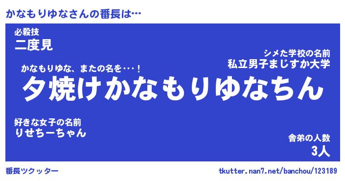| 伝説のあだ名 | 『封印されしスナイパーかなもりゆな』 |
