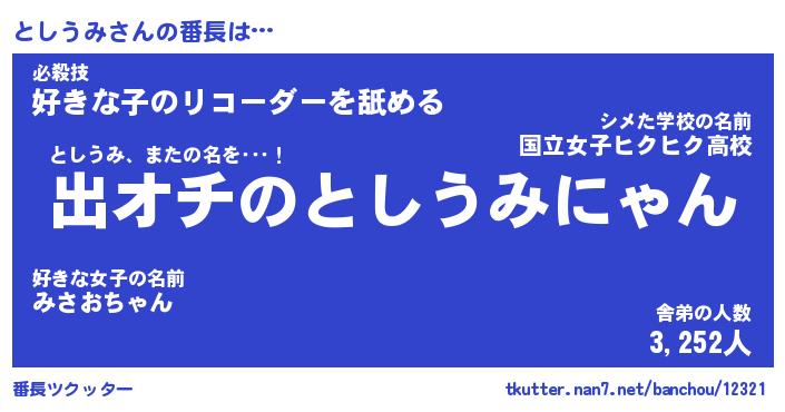 | 意味不明あだ名 | 『ペロリンとしうみ』『永久保存としうみ』 |